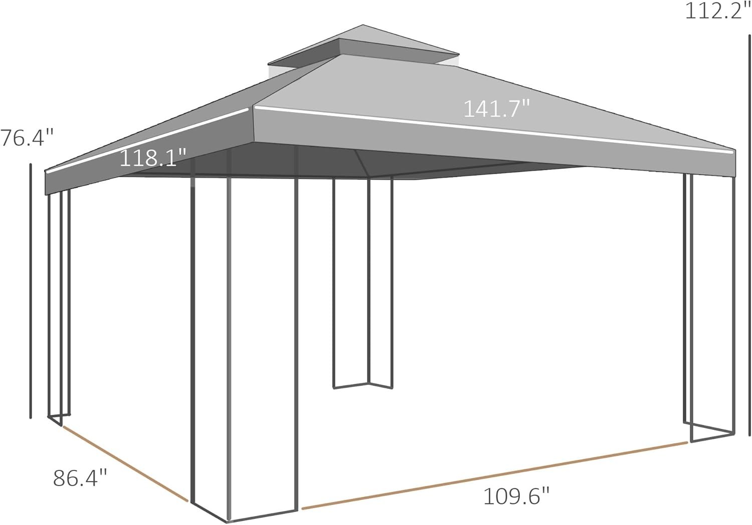 Double-Tier Canopy Design: The two-tier vented canopy improves airflow, reduces wind impact, and helps drain rainwater efficiently. It adds charm and functionality to your outdoor gazebo, keeping your gathering area comfortable and safe from weather elements.